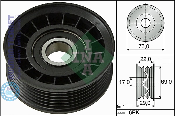V KAYIŞ GERGİ RULMANI X6PKX (17X73X29) FORD B-MAX,C-MAX, FIESTA IV 1.0 1.4 1.6 09-17, FOCUS III, VOLVO S40,C30