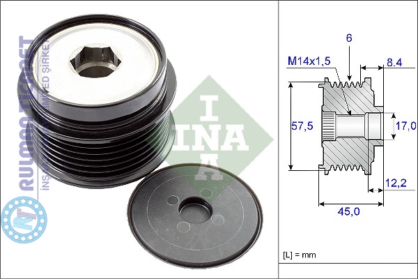 ALTERNATÖR KASNAĞI X6PKX (17X63X45) 2.8 CRD XENSX JEEP WRANGLER III (JK), CHEROKEE (KJ,KK); 3.3i 3.8i DODGE CARAVAN (RG), NITRO