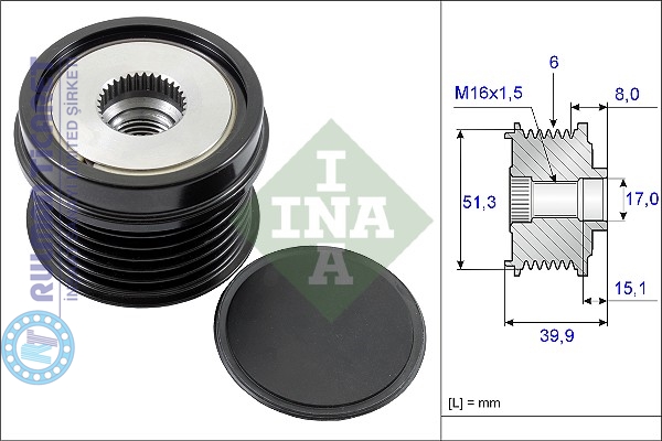 ALTERNATÖR KASNAĞI FORD C-MAX II, FIESTA VI, FOCUS III,MONDEO IV; VOLVO S60 II, S80 II, V40, V60, V70 III 1.6/1.6ALK 04.10-