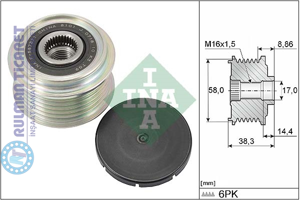ALTERNATÖR KASNAĞI X6PKX (17X58X38) HYUNDAI ACCENT,,ELANTRA,İ10,İ20 KIA CARENS,CERATO (1.6 1.4 2.0 1.0 1.2 B. 1.6 2.0 D.)